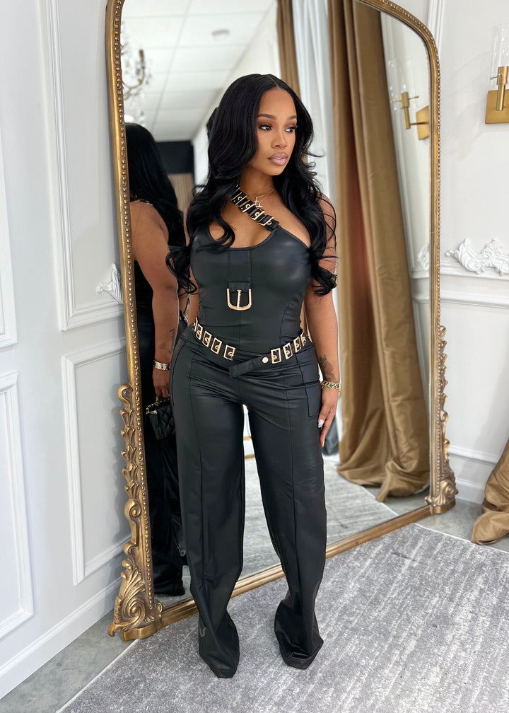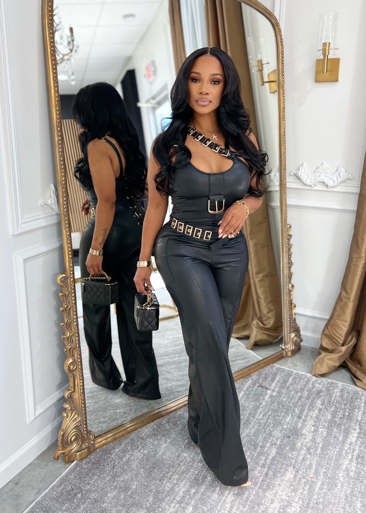 Model 5’2 wearing a size small has stretch back lace up details faux leather 100% polyester