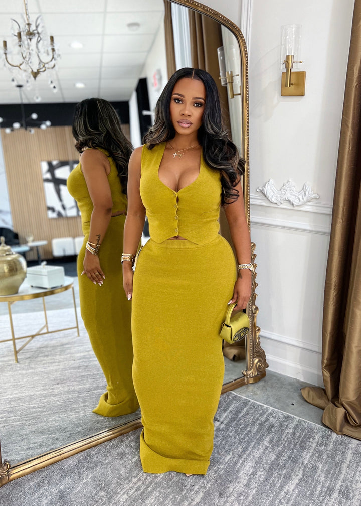 Model 5’2 wearing a size small great stretch front button closure top maxi skirt no closure 95% polyester 5% spandex